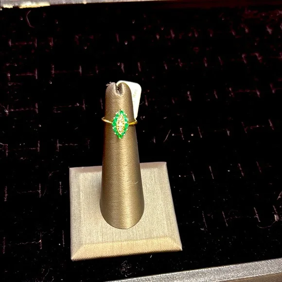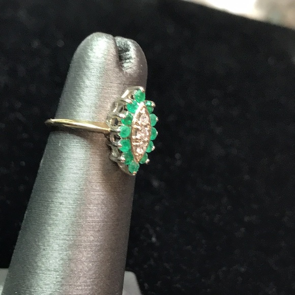 Ladies 14K gold diamond and emerald ring