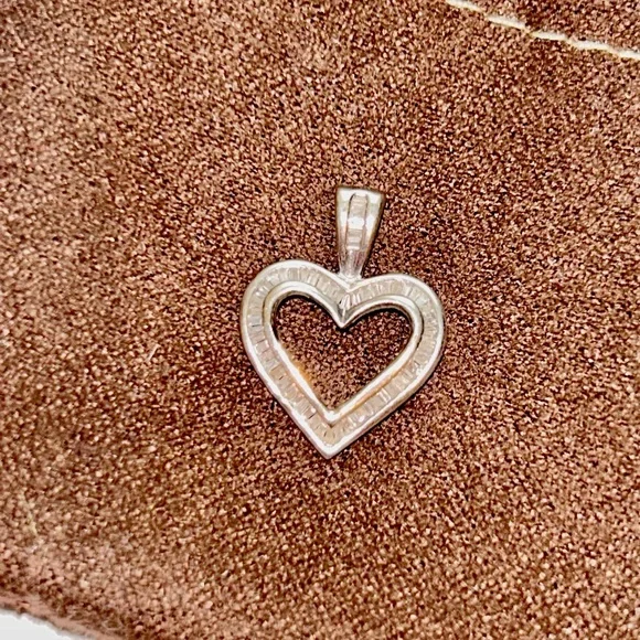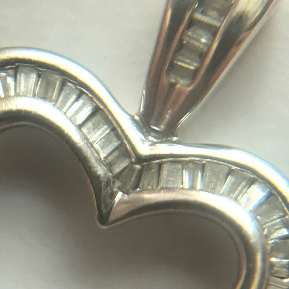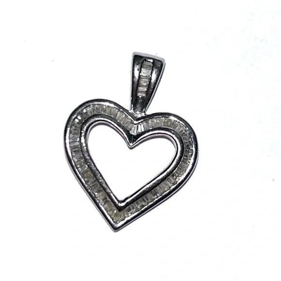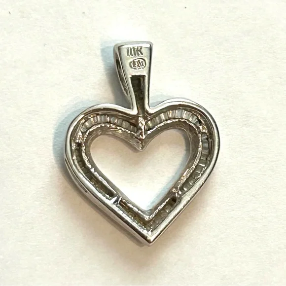 Heart Shape Pendant10k White GoldBaguette DiamondsSigned HN (Heng Ngai)Nice Condition, stones need to be cleaned*