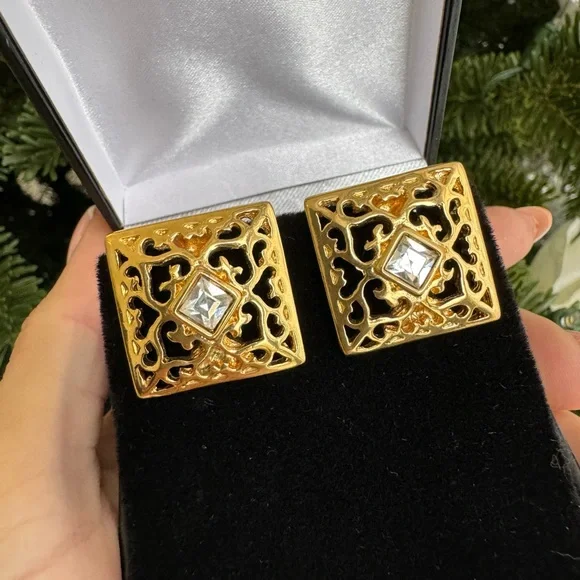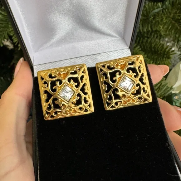 Authentic 18K gold plated Yves Saint Laurent vintage clip on earrings