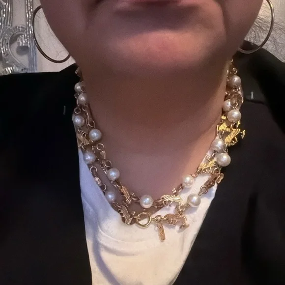 Preloved Salvatore Ferragamo necklace size 18”L gold n with pearls.