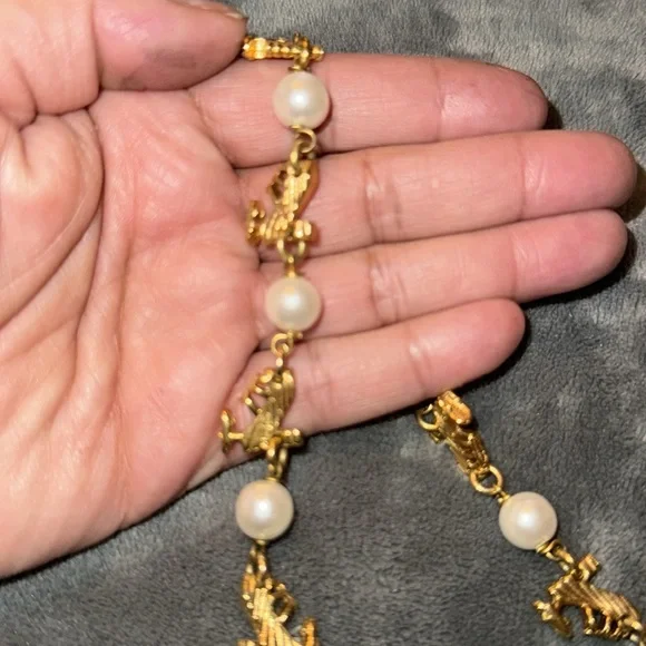 Preloved Salvatore Ferragamo necklace gold n pearls excellent condition.