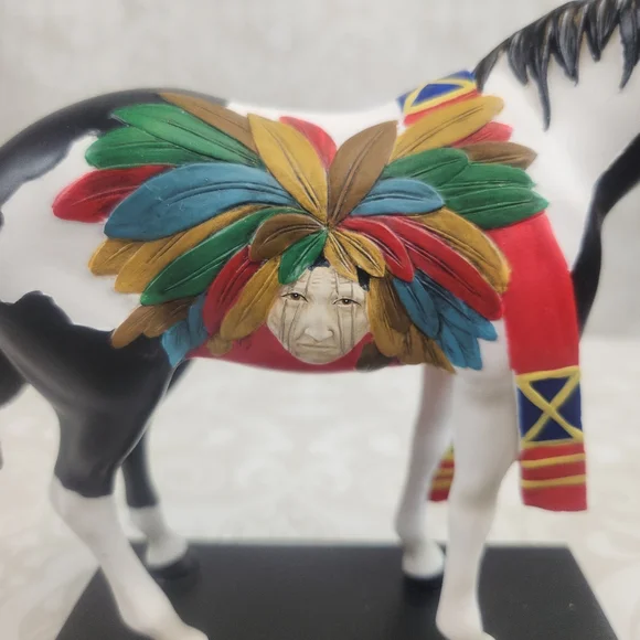 Colorful Cheyenne Warrior horse figurine with vibrant feather design. Features black, white, red, and multicolor accents.Length - 7.25"Height - 6" Width - 2.5"Please take a moment to review our store policy (located under "Meet the Posher") prior to making a purchase. Our store operates as a non-profit, community-based organization and we ship orders from Monday-Thursday. If you have any questions, please feel free to reach out to us before making a purchase. Thank you for your interest!