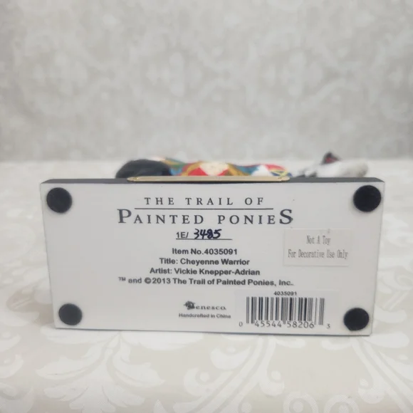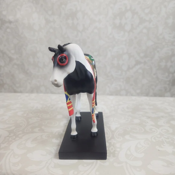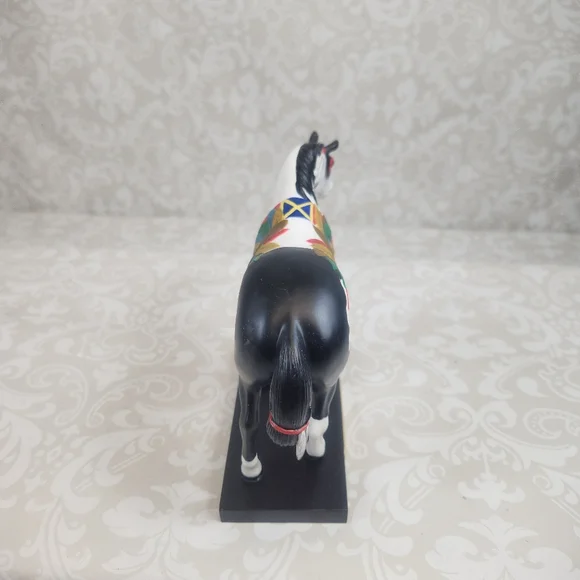 Colorful Cheyenne Warrior horse figurine with vibrant feather design. Features black, white, red, and multicolor accents.Length - 7.25"Height - 6" Width - 2.5"Please take a moment...