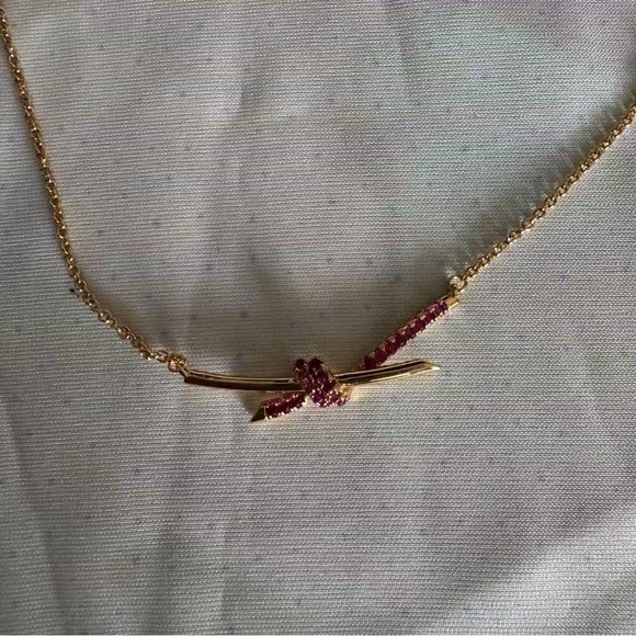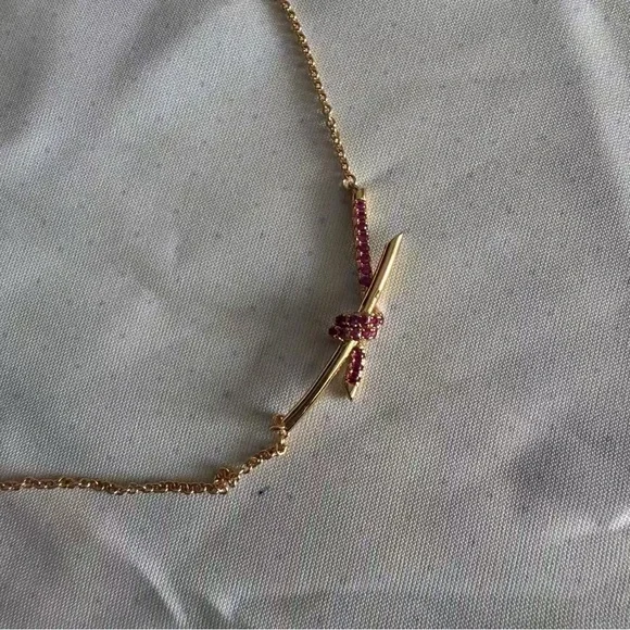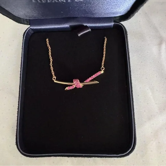 18k rose gold with pink sapphiresCarat total weight .36On an adjustable 15-17" chainFeatures a Tiffany & Co. hallmark