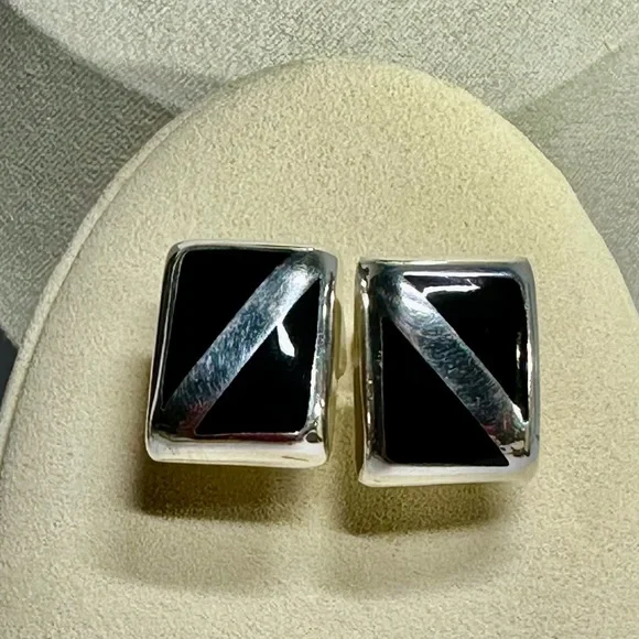 Vintage 925 Mexico Silver & Black Onxy Necklace & Earrings Set Lot#374Condition: Used, consistent with age and wear, possible scratches.SEE ALL PHOTOS PLEASE AND ASK QUESTIONS PRIOR TO PURCHASE.IF purchasing USED EARRINGS the POST may not always be straight.