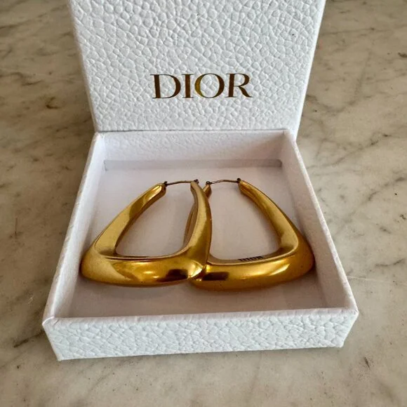 Dior Pierced EarringsOwner can no longer wear Pierced Earrings2" drop2 3/4" width at bottomNo obvious FlawsOriginal Box Included
