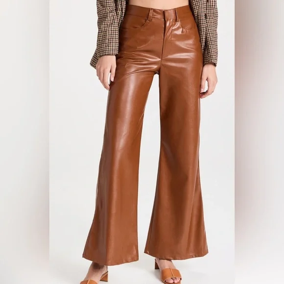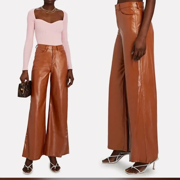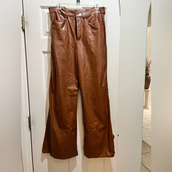 NWOT Enza Costa Vegan Leather WideLeg Pants Cognac, size 30