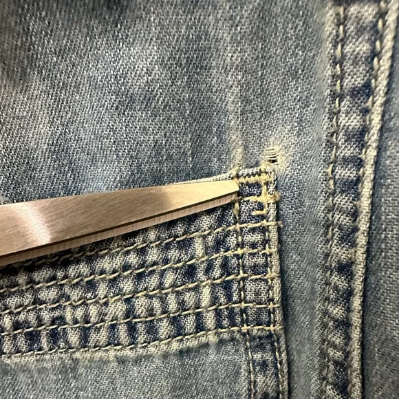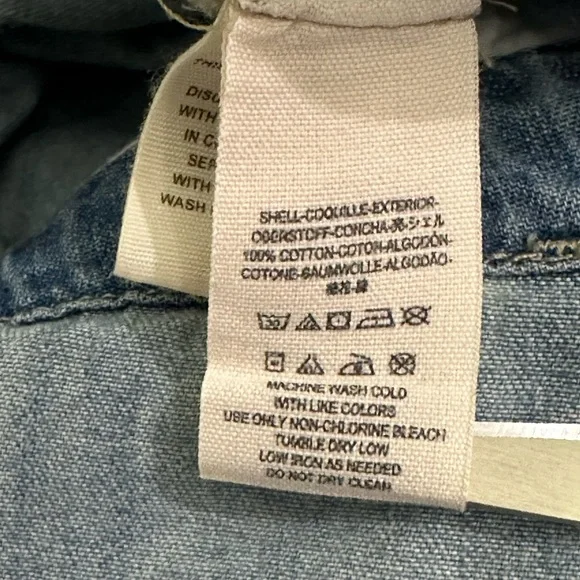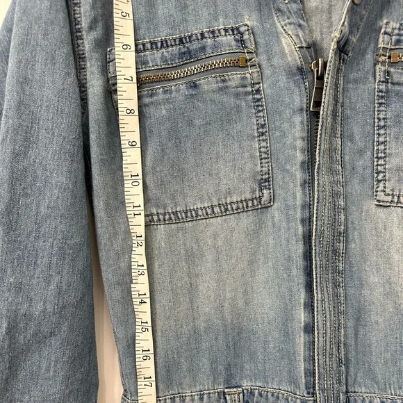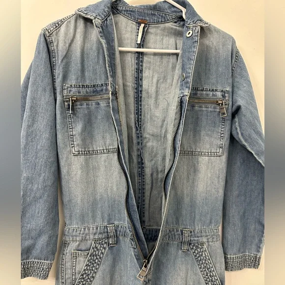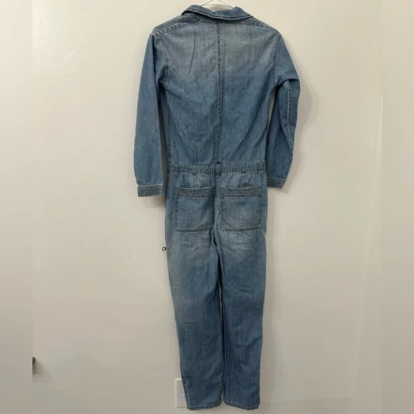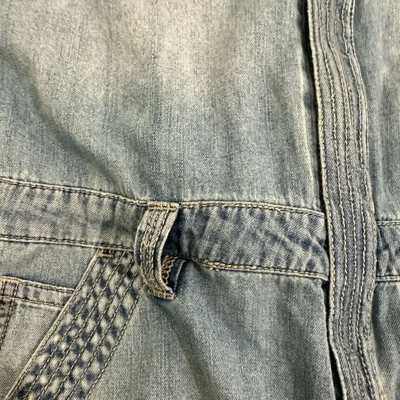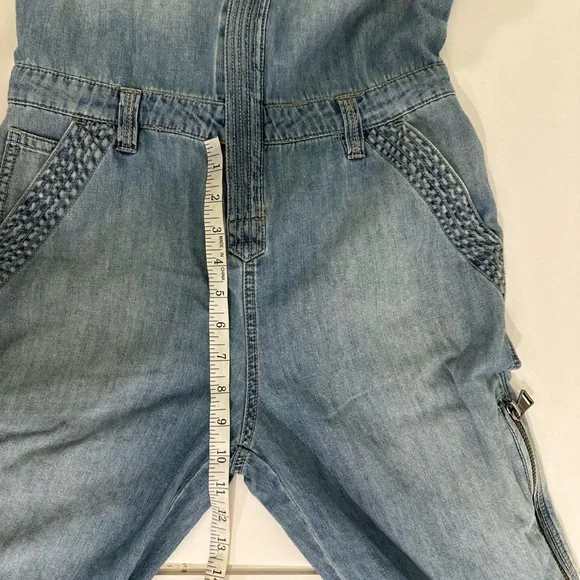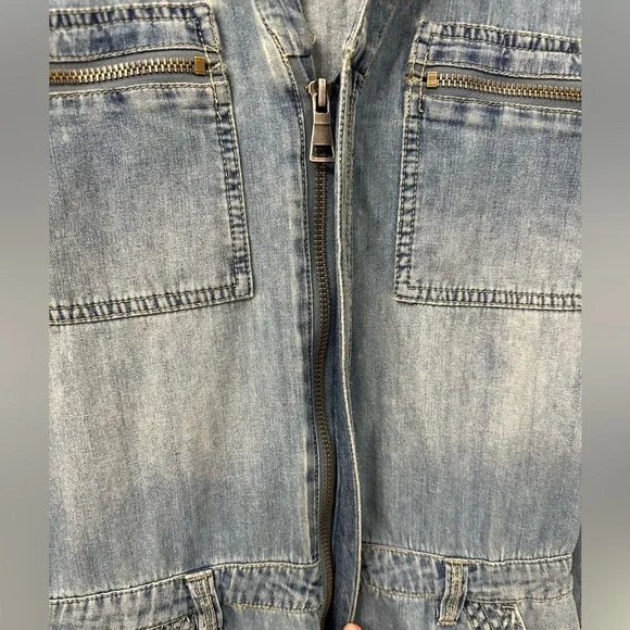Gently usedDenim utility denim jumpsuitLabelled size 24 photos provide approx measurements Pull on styleZipper enclosure (zipper works photos provided)Inside drawstringsJumpsuit has many zipper pockets (all zippers work)Belt loops****last picture shows small minor rip above the back pocket. No stainsOffers welcomeSection J
