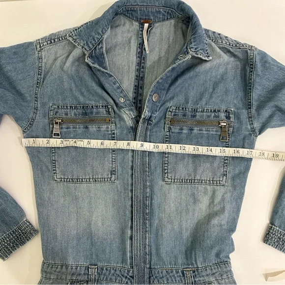 People Womens Denim Jumpsuit Size 24 Boiler Suit Blue Long Sleeve
