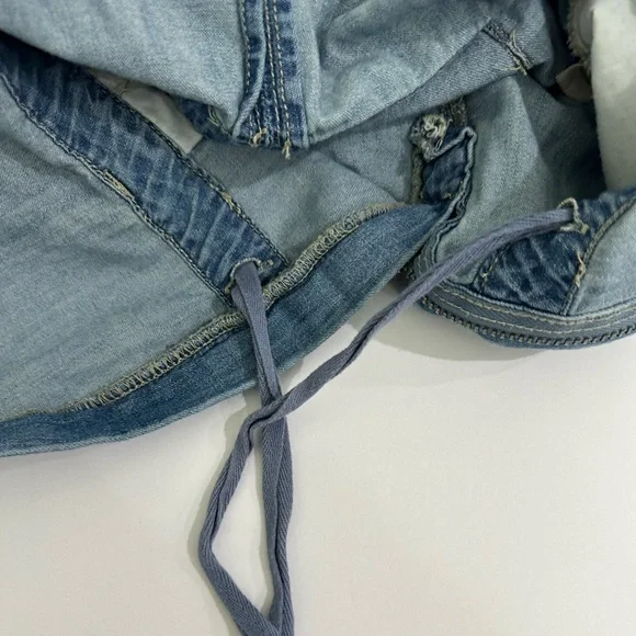 Gently usedDenim utility denim jumpsuitLabelled size 24 photos provide approx measurements Pull on styleZipper enclosure (zipper works photos provided)Inside drawstringsJumpsuit...