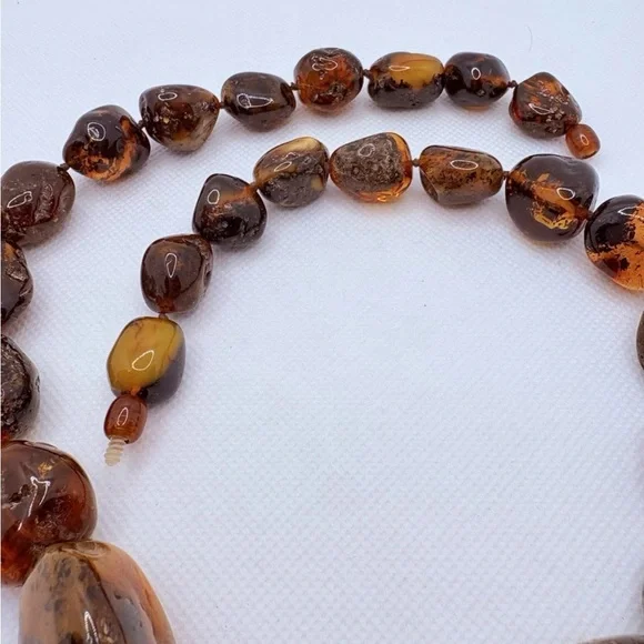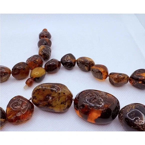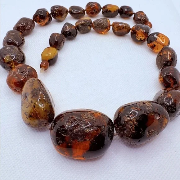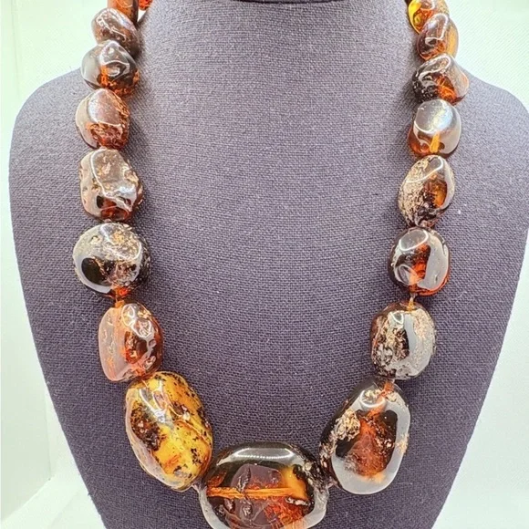 Massive amber bead necklace. Makes a statement. Beads are more in a natural shape with a graduated size. Catches the light beautifully.