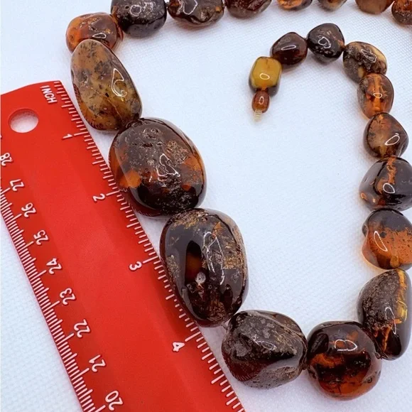 Large Vintage Amber Bead Necklace Graduated 92.7 Grams 20” Long Glows
