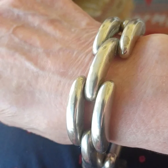 Vintage Hinged Link Bracelet Chunky 63gm of Sterling Silver 925