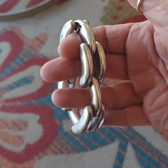 Bold and stylish chunky Sterling Silver Solid Link bracelet. Perfect for any occasion.who doesn´t like Glam! This 925 SS is VINTAGE over 20 years & in Excellent shape! She...