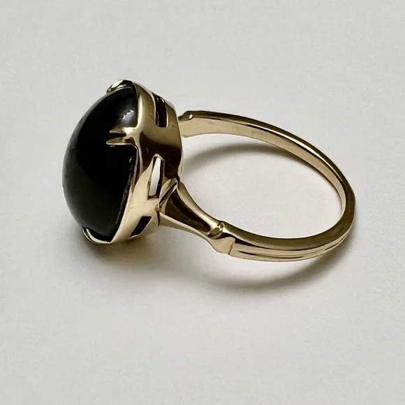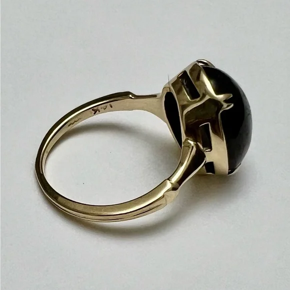 Vintage solid 14k cat’s eye Spectrolite ring. Preloved in great condition. Stone shows minor signs of wear but otherwise a beauty. Beautiful shimmer and amazing cat eye effect....