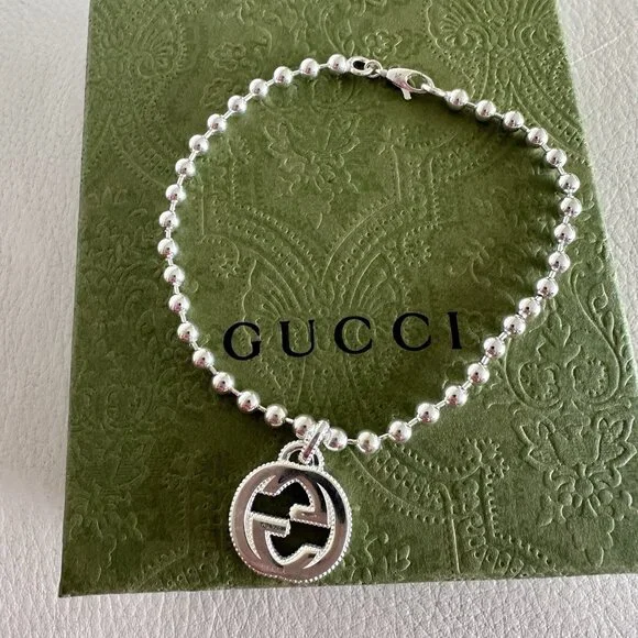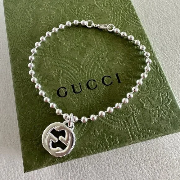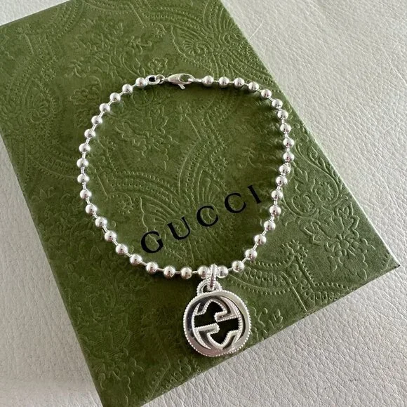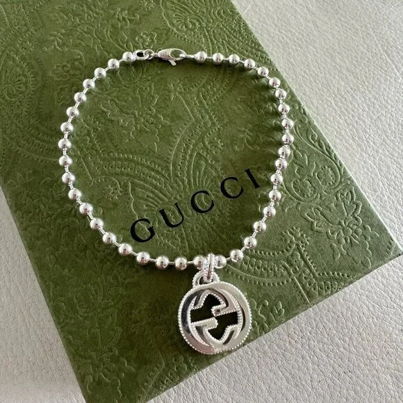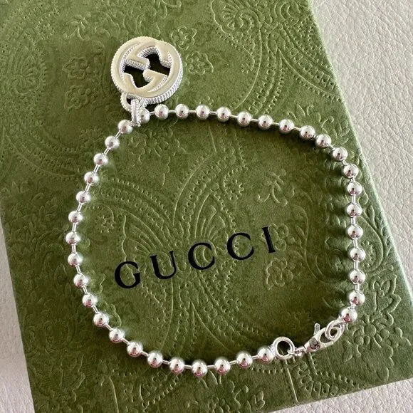 NEW Interlocking GG Logo Sterling Silver Boule Bracelet Sz 21 100% Auth