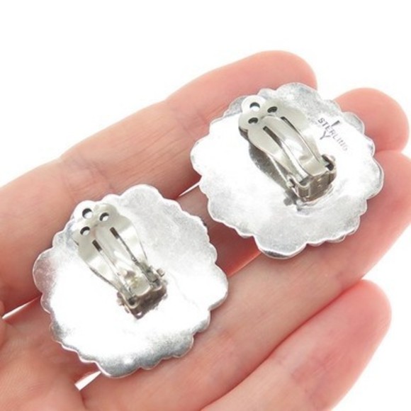 SILVER CLOUD Old Pawn 925 Sterling Vintage Multi-Gem Flower Clip On Earrings