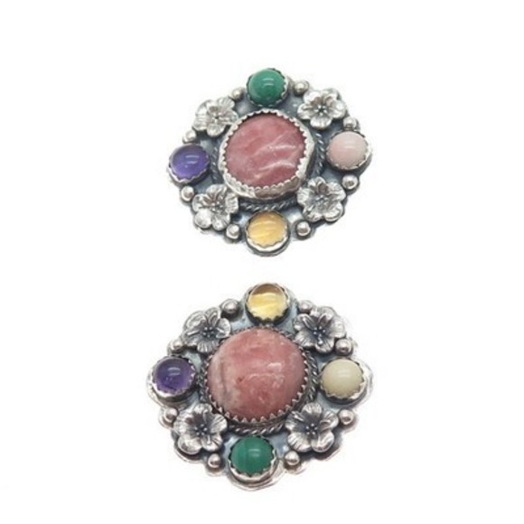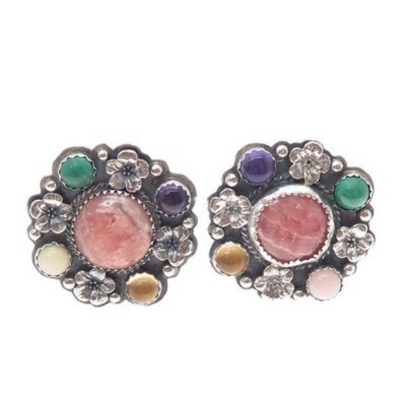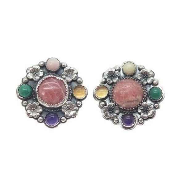 Great vintage condition.Condition: Pre-owned Brand: Silver Cloud Shape: Flower Theme: Dangle/Drop","Art Main stone: Rhodochrosite Main stone color: Pink Main stone creation: Natural Occasion: Anniversary","Birthday","Christmas Secondary stone: Amethyst","Citrine","Malachite","Quartz Type: Earrings Vintage: YesWeight: 21.5grWELCOME TO PAWN SHOP CITYWe have been in the jewelry business for over 30 years. Since 1990, our establishment has been serving a variety of clients by providing them with beautiful pre-owned, vintage and antique pieces.Acknowledging that today′s customers are very sophisticated and are looking for top quality goods, our acquisitions are hand-picked for our special clientele. We do offer the most interesting items along with affordable prices.We do not disturb our vintage jewelry to keep its original patina, leaving it to your discretion. Depending on your own taste, you can either polish it or keep it in the original condition.We are committed to making every customer feel supported! Feel free to ask any questions which may come to mind while shopping with us.THANK YOU FOR VISITING PAWN SHOP CITYA348611