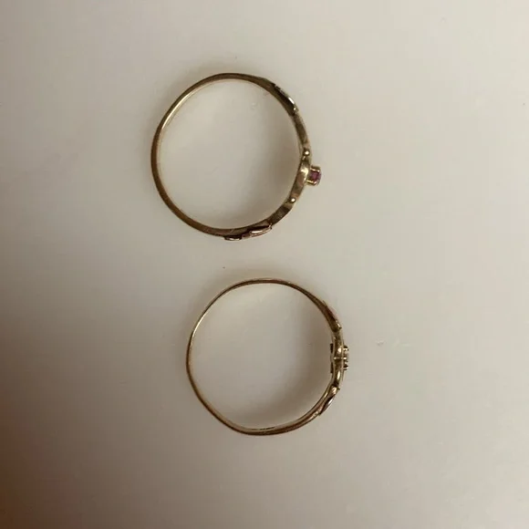 Pre-owned Black Hills Gold rings.Size 4-1/2 on both rings in great wearable condition.One ring is alittle bent, see pictures.A dainty pair of beautiful rings for someone who enjoys and is a fan of Black Hills Gold.Thank you for looking!