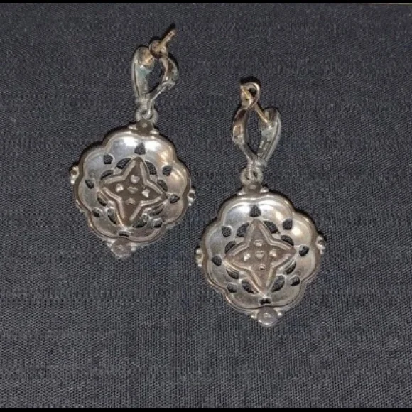 Elegant Judith Ripka designer 18k diamond and sterling silver earrings Beautiful floral filigree detailing.Safety closureMeasure approximately 1” in lengthEUCPlease see all...