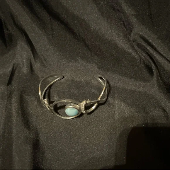 Dante sterlingsilver cuff bracelet by Marahlago with a striking Larimar center stone, that is enhanced with white sapphires on both sides.Ideal for adding a touch of elegance. As with most of my offerings, this is new never worn.I have reduced this to what I believe is a very fair price.Thank you for shopping with CMF, I appreciate your interest.
