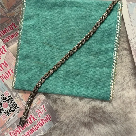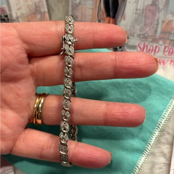 Vintage Diamond Accent Bracelet in Sterling Silver in guc please see all pics. Approx Measurements 8 inches long starting from locket. Please note all other items not included only used for display. Condition is guc vintage.