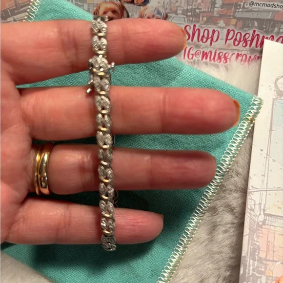 Vintage Diamond Accent Bracelet in Sterling Silver in guc please see all pics. Approx Measurements 8 inches long starting from locket. Please note all other items not included...