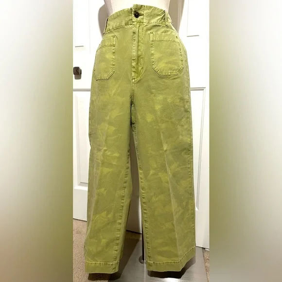 Anthropologie Pilcro Skipper Wide Leg Crop Pants Tie Dye Chartreuse SZ 31 NWOT
