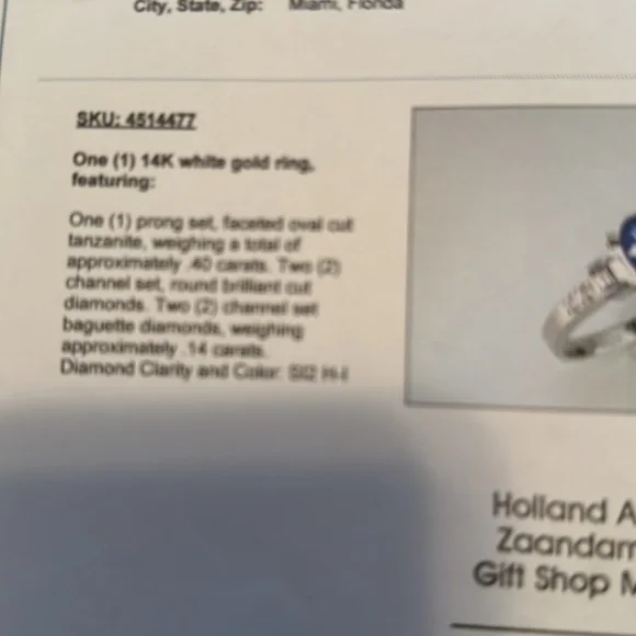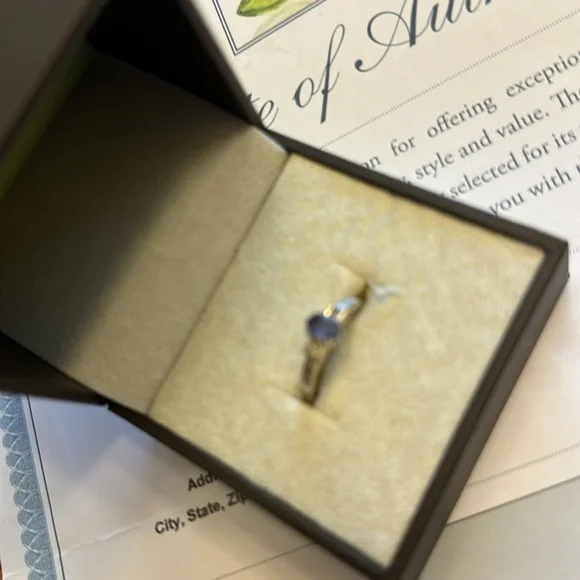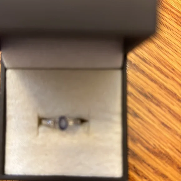 This is a 14k white gold and tanzanite faceted oval cut ring approx .40 carats and two channel set brilliant diamonds .14 carats. Diamond color and clarity SI2 H-II have the matching earrings listed.Downsizing.Box not included but will be well packed.