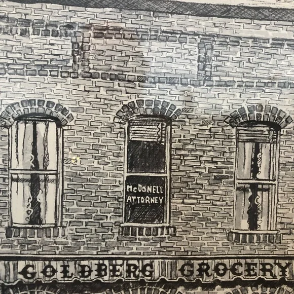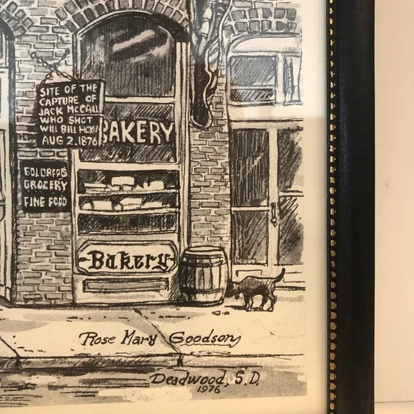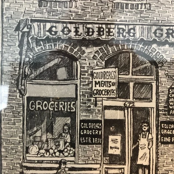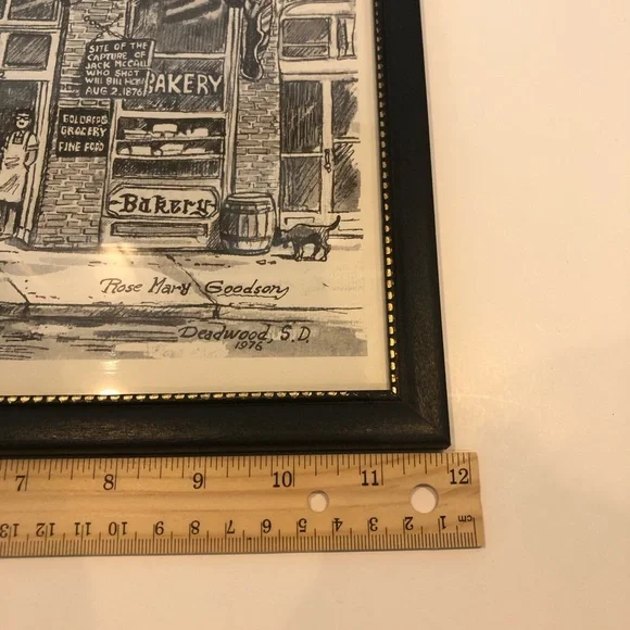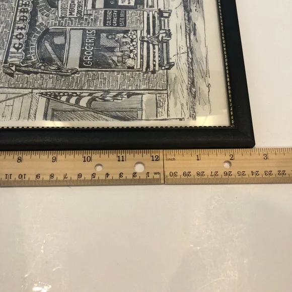 Mary Rose Goodson reprint.Street scene.Framed.Approximately 12”x15”. See photos for measurements and condition.