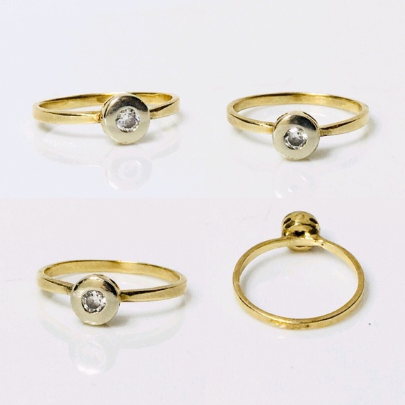 Vintage European Petite Diamond Solitaire RingTested Solid 585 14kt Gold Two Tone Yellow and White GoldBezel Set Brilliant Round Cut Solitaire DiamondApprox .09-.10 Diamond CTWUS...