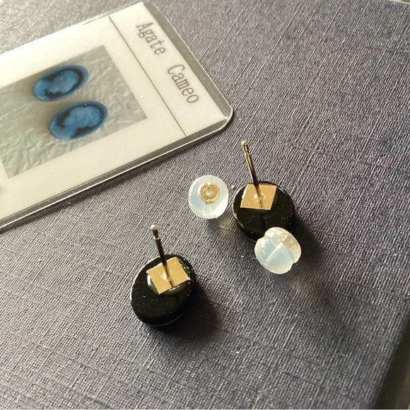 18K Solid Yellow Gold Stud Agate Cameo NWT