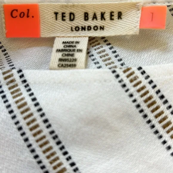 Comfortable and easy to wear with hidden pockets, a zipper in the back and a sash that is sewn into the side seams. A Ted Baker size 1 is equivalent to a US 4. The waist measures...