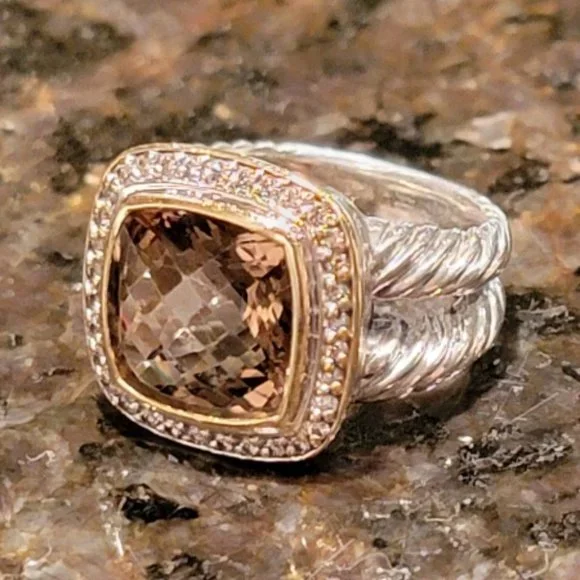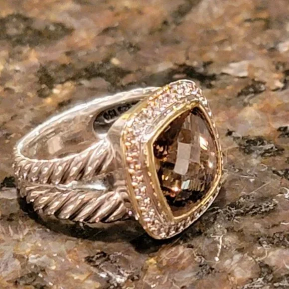 DAVID YURMAN 18k, S/S 11mmMOONLIGHT ICE SMOKEY RING Sz. 5 3/4
