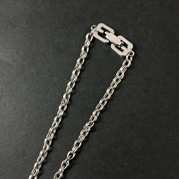 Givenchy silver tone double G logo chain necklace. Signature clasp is stamped. The chain measures 30”. In excellent pre-owned condition.Please carefully review photos, read the description & ask questions PRIOR TO buying/bidding/offering. All sales are binding & final. No cancellations.