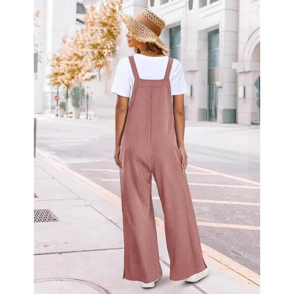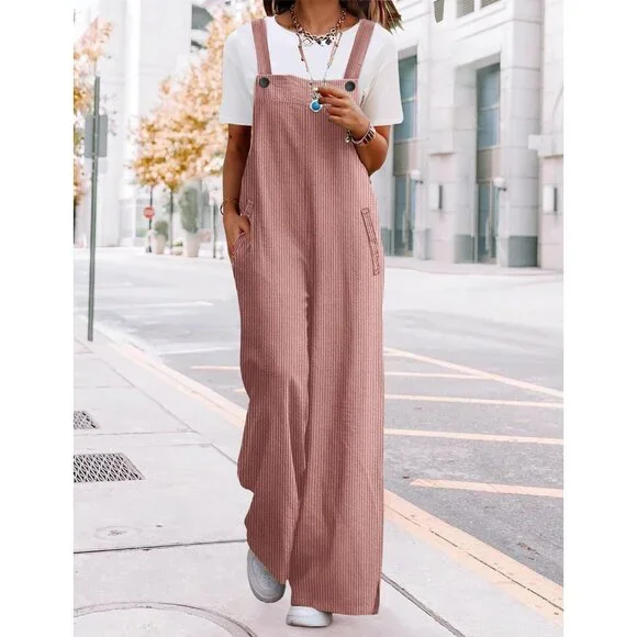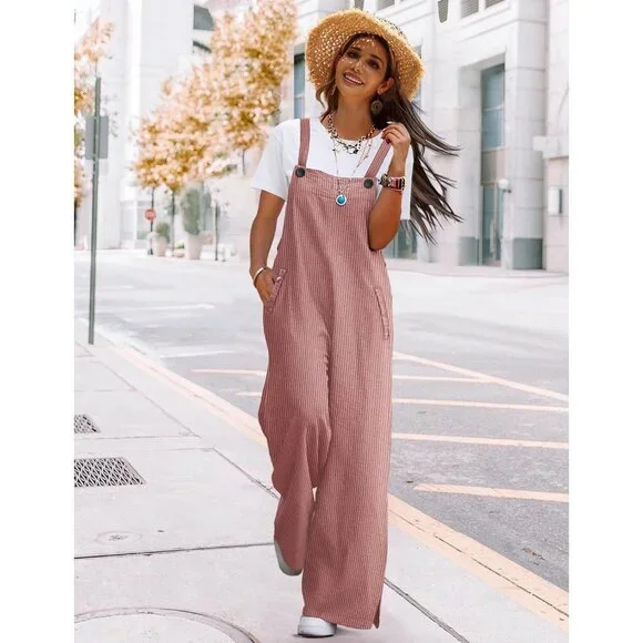 ✅ Bib Jumpsuits for women are made of soft, textured corduroy with vertical stripes that are both stylish and figure flattering. Featuring wrinkle free, durable, and slightly stretchy, they are great choice for lounging all day in during the autumn and winter months.✅ Featuring multiple buttons on the adjustable straps to vary the fit of the bib. The way the torso is cut gives you a waistline while offering relaxed comfort, whether you are curvy or petite. Walking down the street with hand putting in the pockets, side slit wide leg jumpsuits drape well over your shoes.✅ Garment Care: Hand wash or machine wash cold. Hang or lay flat to dry. Low ironing if necessary. Do not bleach.