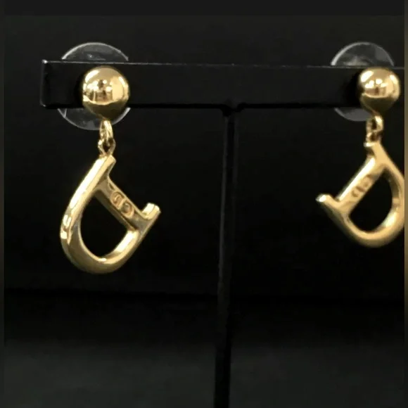 Dior gold tone signature pierced earrings. D logo with CD engraved. Each measures @ 0.5 X 0.75”. In excellent preowned condition.Please carefully review the photos, read the description & ask questions BEFORE buying, bidding or offering. All sales are binding & final. No cancellations or “accidental” bids.