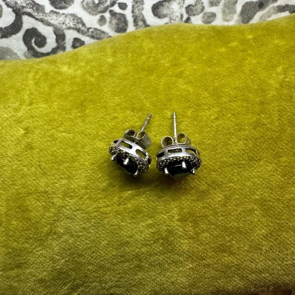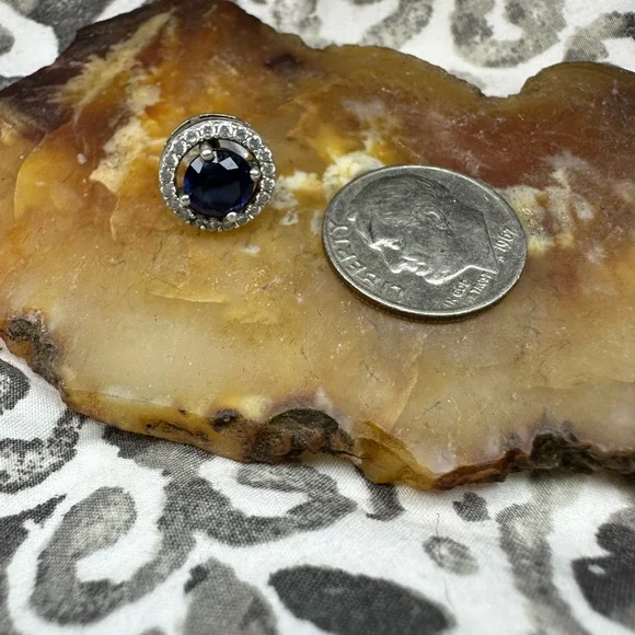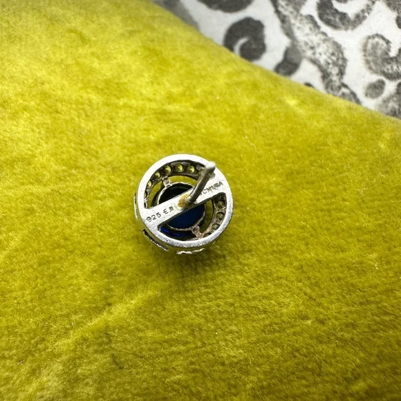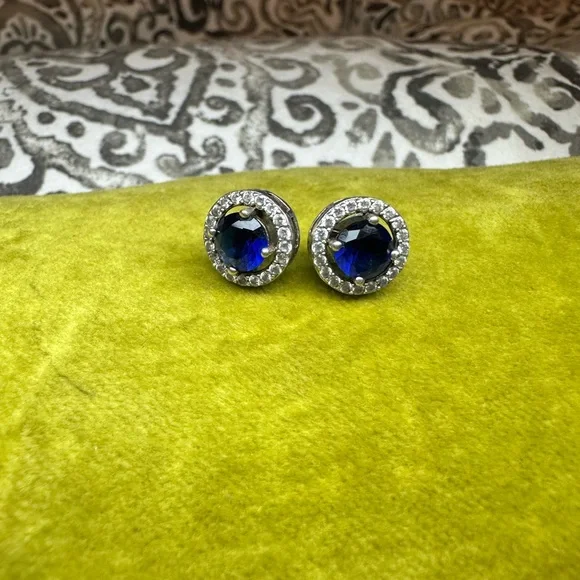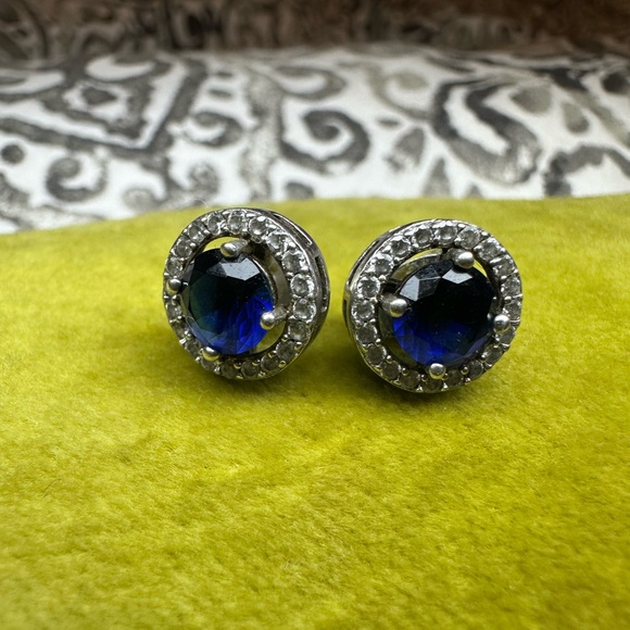 Diamond and sapphire round earrings with screw on post backs stamped 925