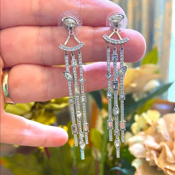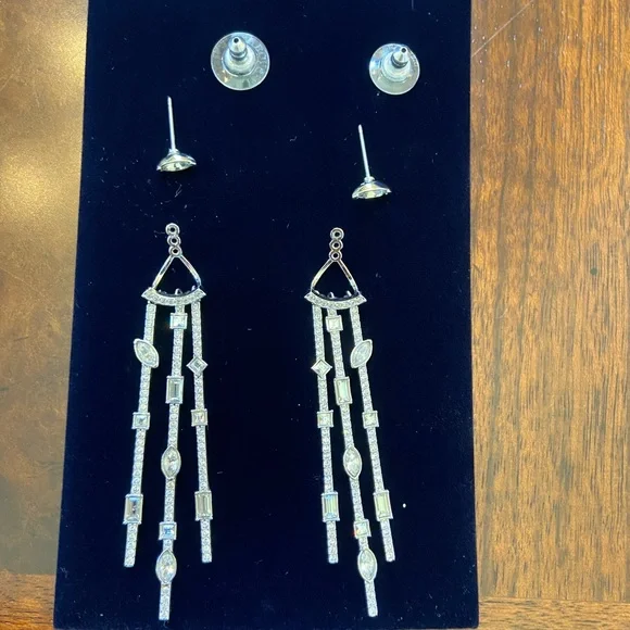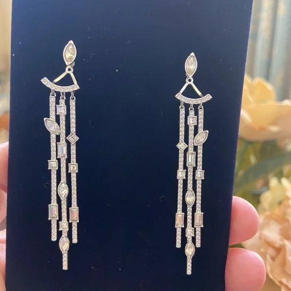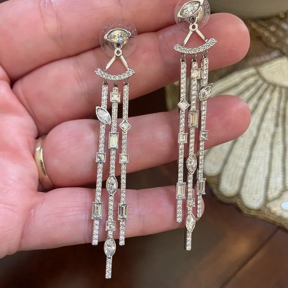 Rare, authentic signed Swarovski earrings, could wear in different way, new with original box. Silver with white Swarovski crystals