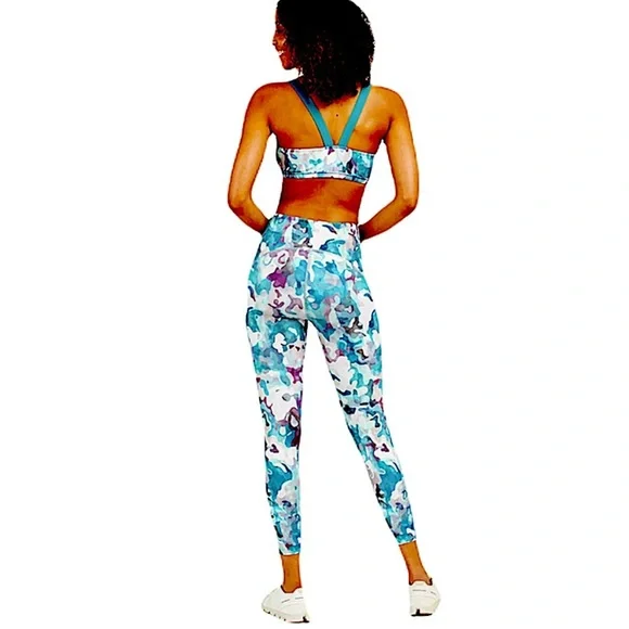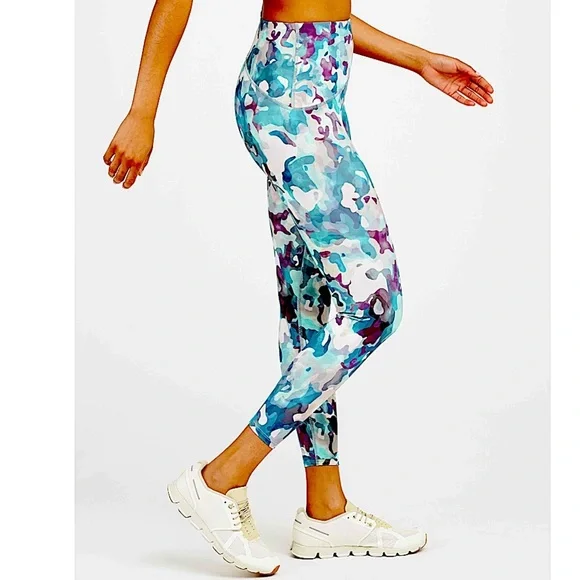 Spanx 7/8 Booty Boost Collection Leggings, NWT, Size Small, Print-Painted camo multicolor. Get a booty lift with these Spanx signature sculpting performance fabric and contoured waistband. This flattering design is engineered to give you the best rearview. For gym-goers, yoga, marathon runners, these leggings support you, while making you look amazing. Hidden pocket in waistband fits a key or credit card, center-seam free, moisture-wicking fabric engineered for dryness and comfort. 68% nylon, 32% Lycra.