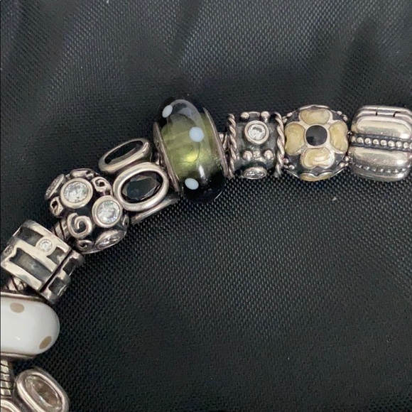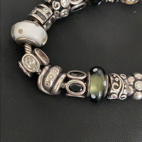 7.5Sterling silver19 beads totalOne has the initial SBlack, silver, white, grayAlmost 1,000.00 retailVery good condition