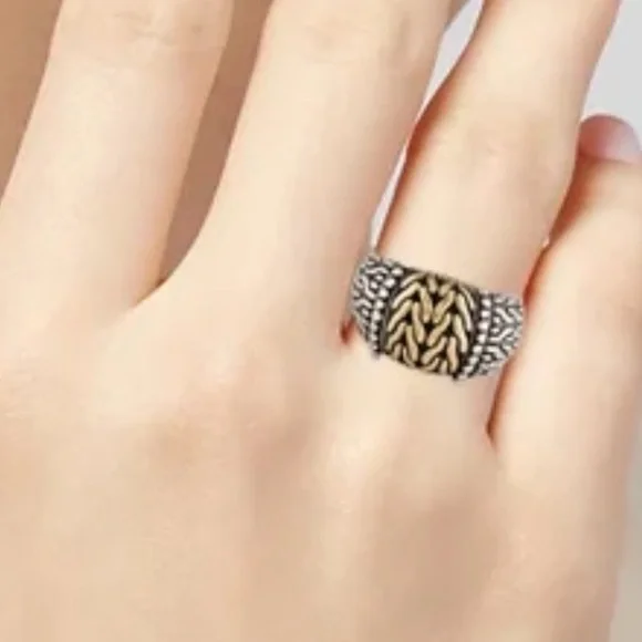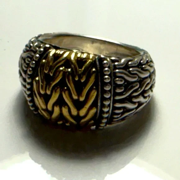 John Hardy Silver 18K Classic Chain Ring 5.5