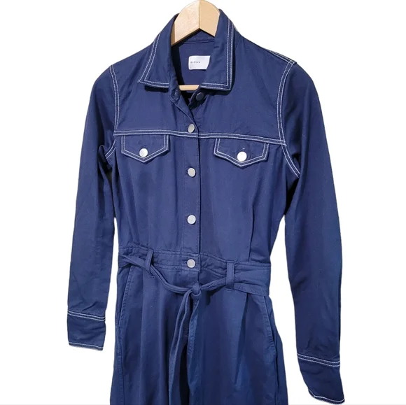 Bldwn NWOT Harley Belted Jumpsuit in Navy Blue. Button-down. 100% cotton.Excellent condition. Size XS, approx 28in inseam. Non-smoking home.