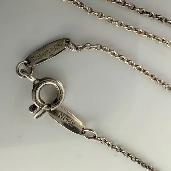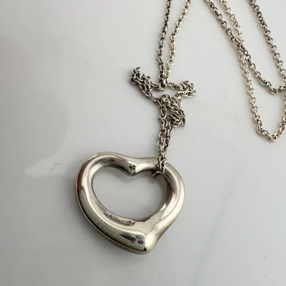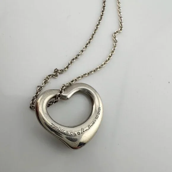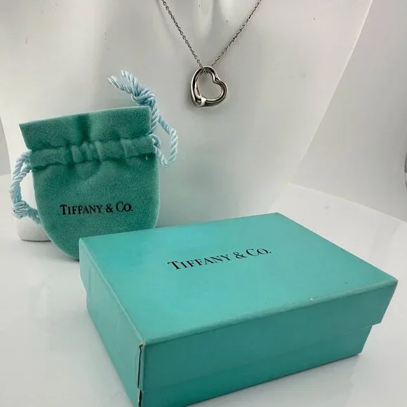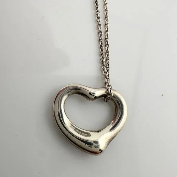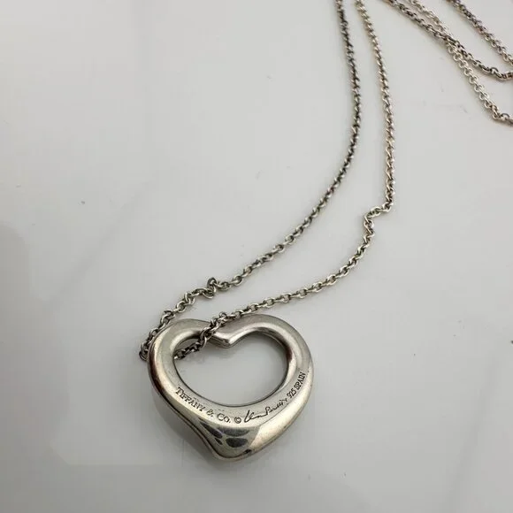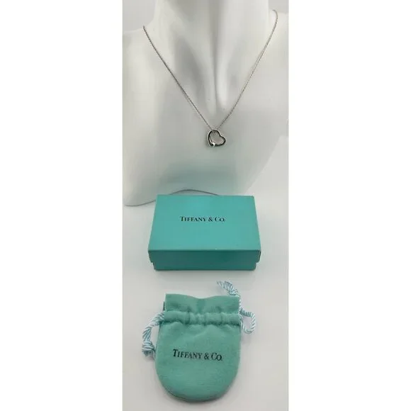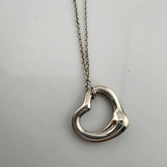 Beautiful artistic Tiffany and Co "Open Heart" pendant with 16" Sterling silver chain. Pendant approx 1/2" tall.Full Inclusion! Dust Bag and Box. All in Great Condition.