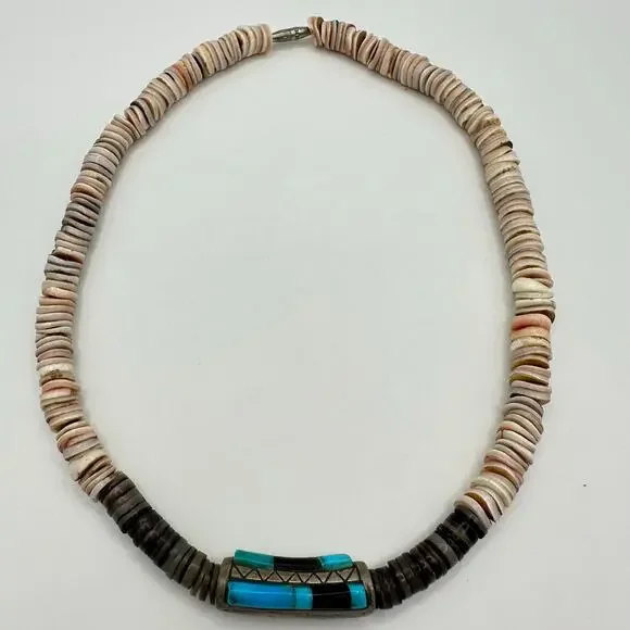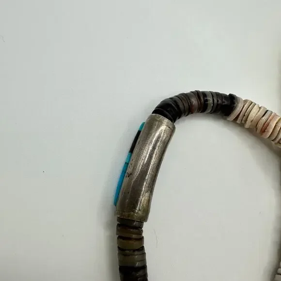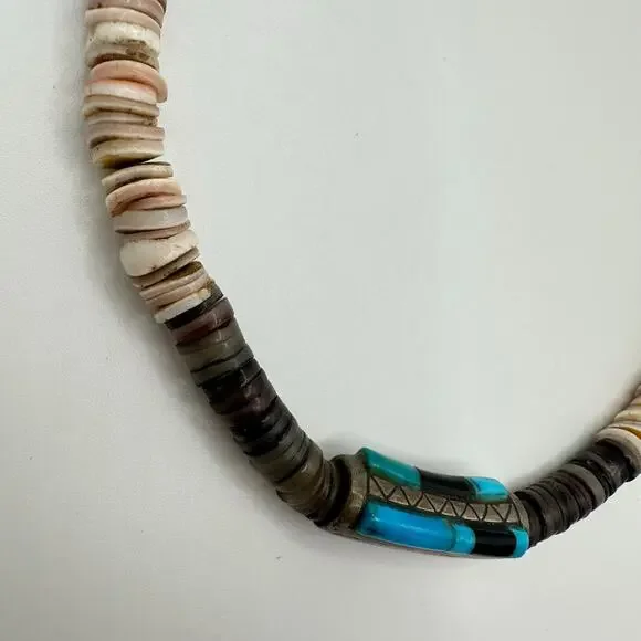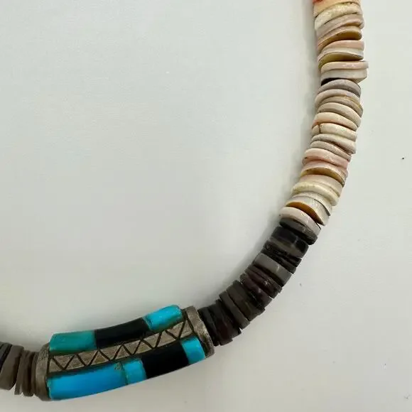 Native American Santo Domingo vintage sterling heishi turquoise beaded necklace