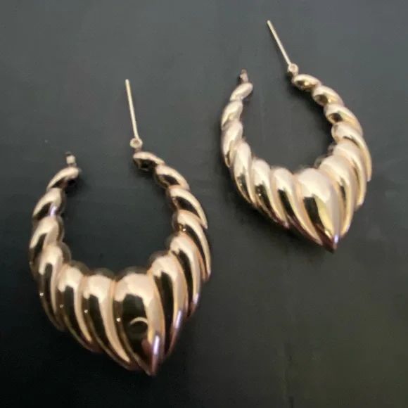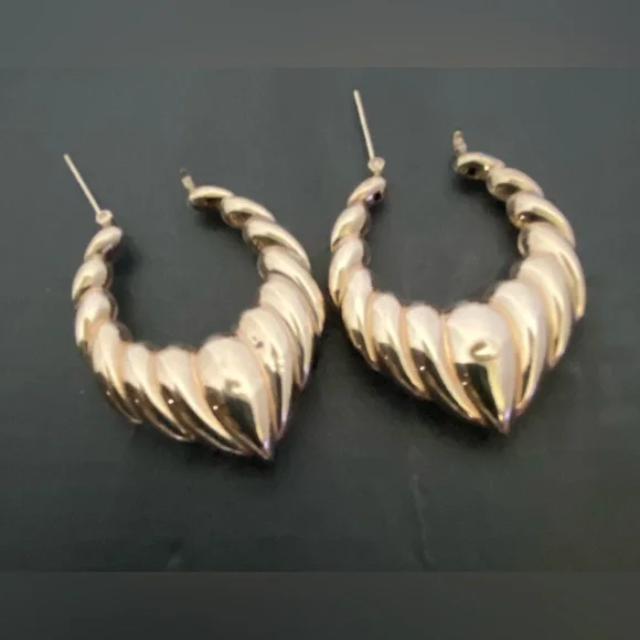 Vintage 14kt Shrimp hoop earrings with 7 grams in weight.