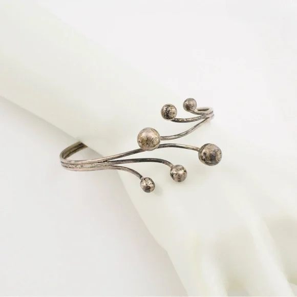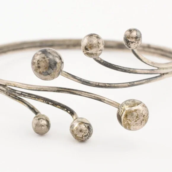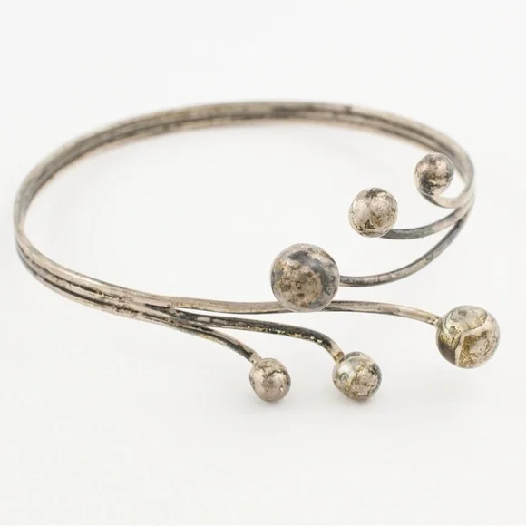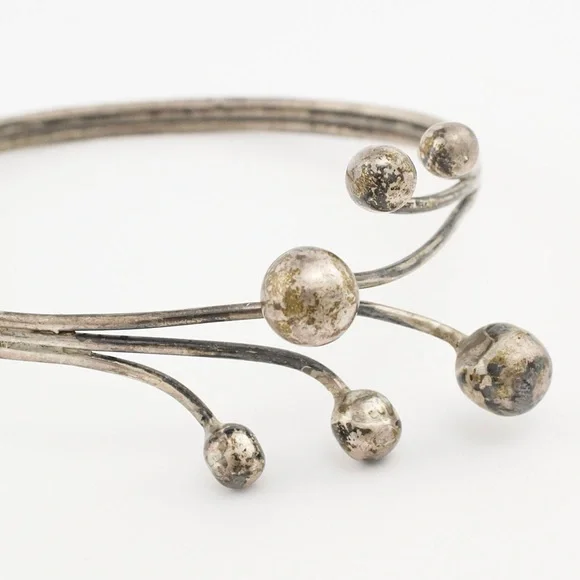 Vintage Taxco Sterling Silver Ball End Bangle Bracelet Modernist Brutalist