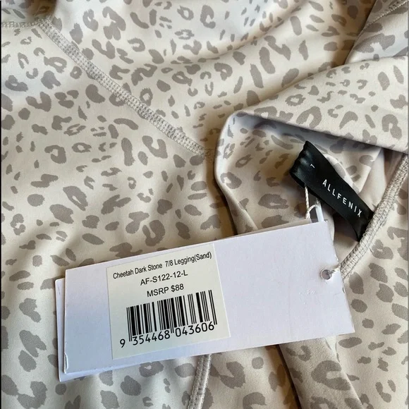 NWT ALLFENIX Leggings. Size large. Cheetah dark stone print. Super sleek, comfortable, well-made leggings! Super cute print, very stylish, wide waistband to add some tummy control!* never wore or tried these on!