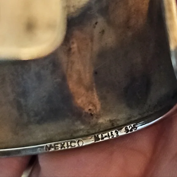 Gorgeous stamped Sterling Silver Wide Cuff made in Mexico 2" widthnot dents in excellent condition just needs polishing