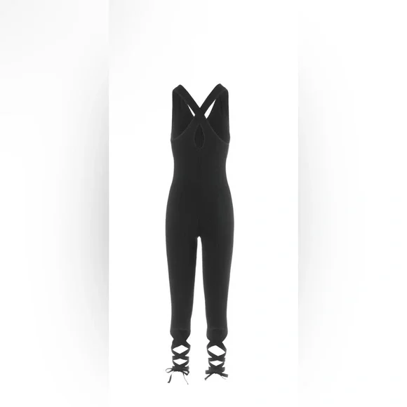 Move and groove in this dance-inspired bodysuitStretch fabric provides full mobilitySleeveless V-neck design with crisscross back strapsThree-quarter length legs with adjustable tie-up legsForm-fitting assures unimpeded pliabilityArmpit to armpit 15.5”Gently worn in excellent condition like new without flaws. Questions? Leave a comment below!